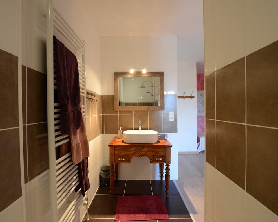Douche à l’italienne Lavabo Sèche-cheveux Sèche-serviettes Linge de toilette Savon / Shampoing