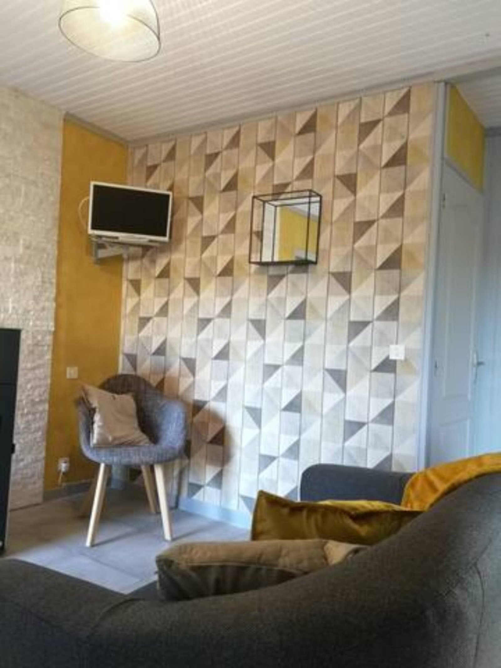 Le gîte « La prairie » accès PMR. Pièce de vie avec coin canapé et cuisine équipée. Chambre attenante (porte large) avec grande salle d’eau toute équipée et wc.