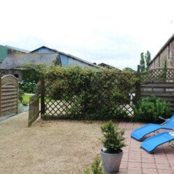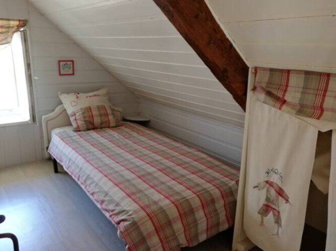 A l’étage, 2 chambres, avec 2 lits simples dans chaque. 1 salle d’eau avec WC et douche. Jardin clos et arboré.