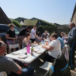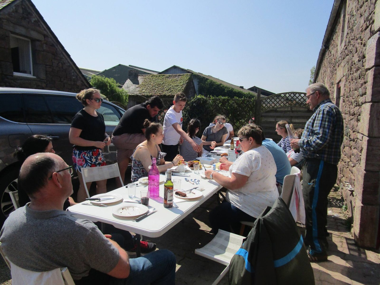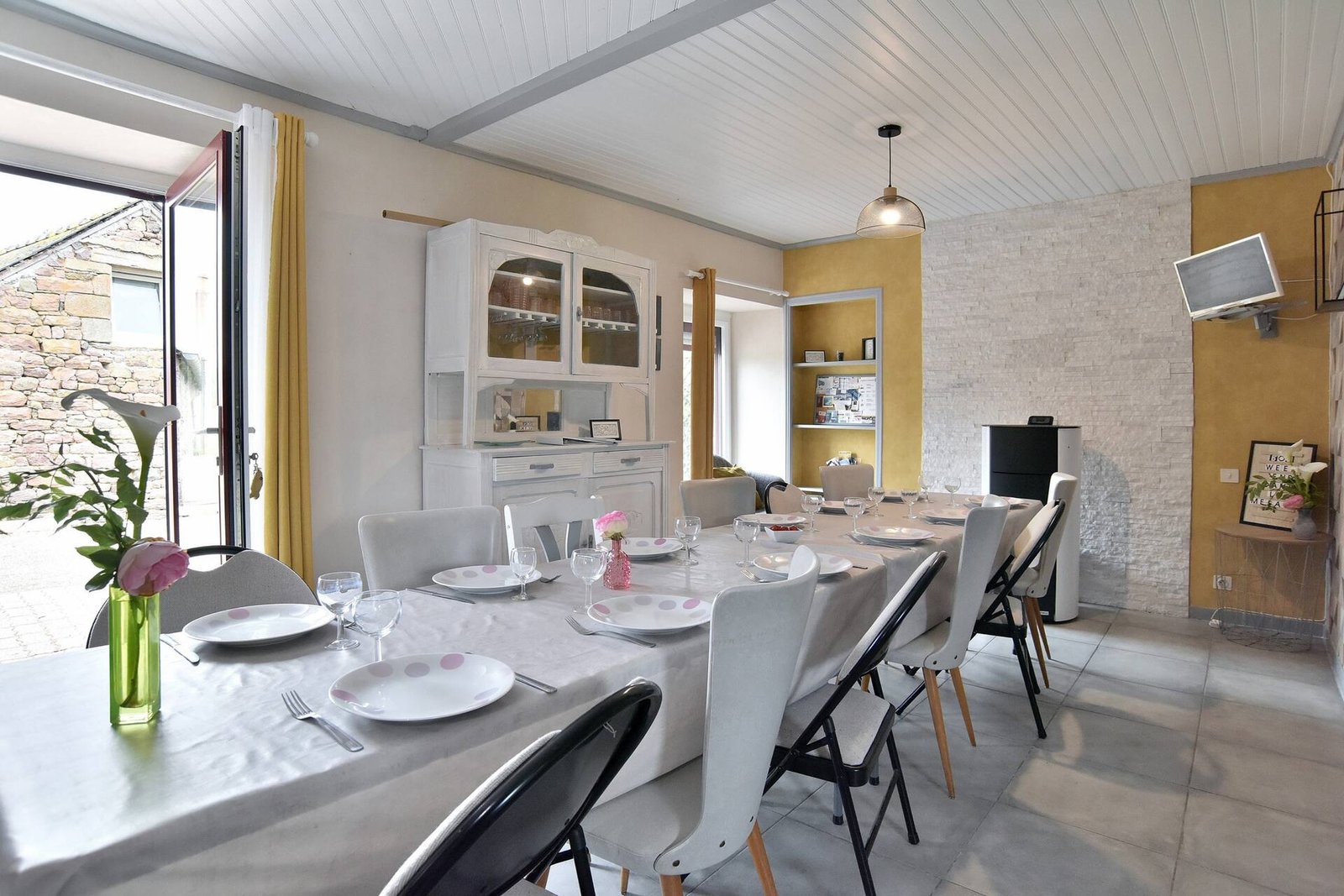 Le gîte « Le Mélaïs » (5 pers) permet de tabler 15 pers maximum, dans la pièce de vie /cuisine équipée ou sur la terrasse, aux beaux jours.