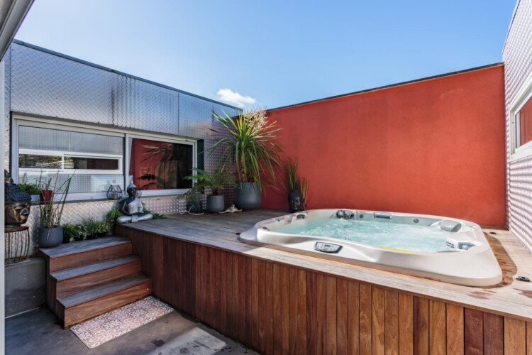 - a vast 600m² exterior featuring a dining area, relaxation areas with sofas and deckchairs around the private heated pool, a Jacuzzi and a barbecue,